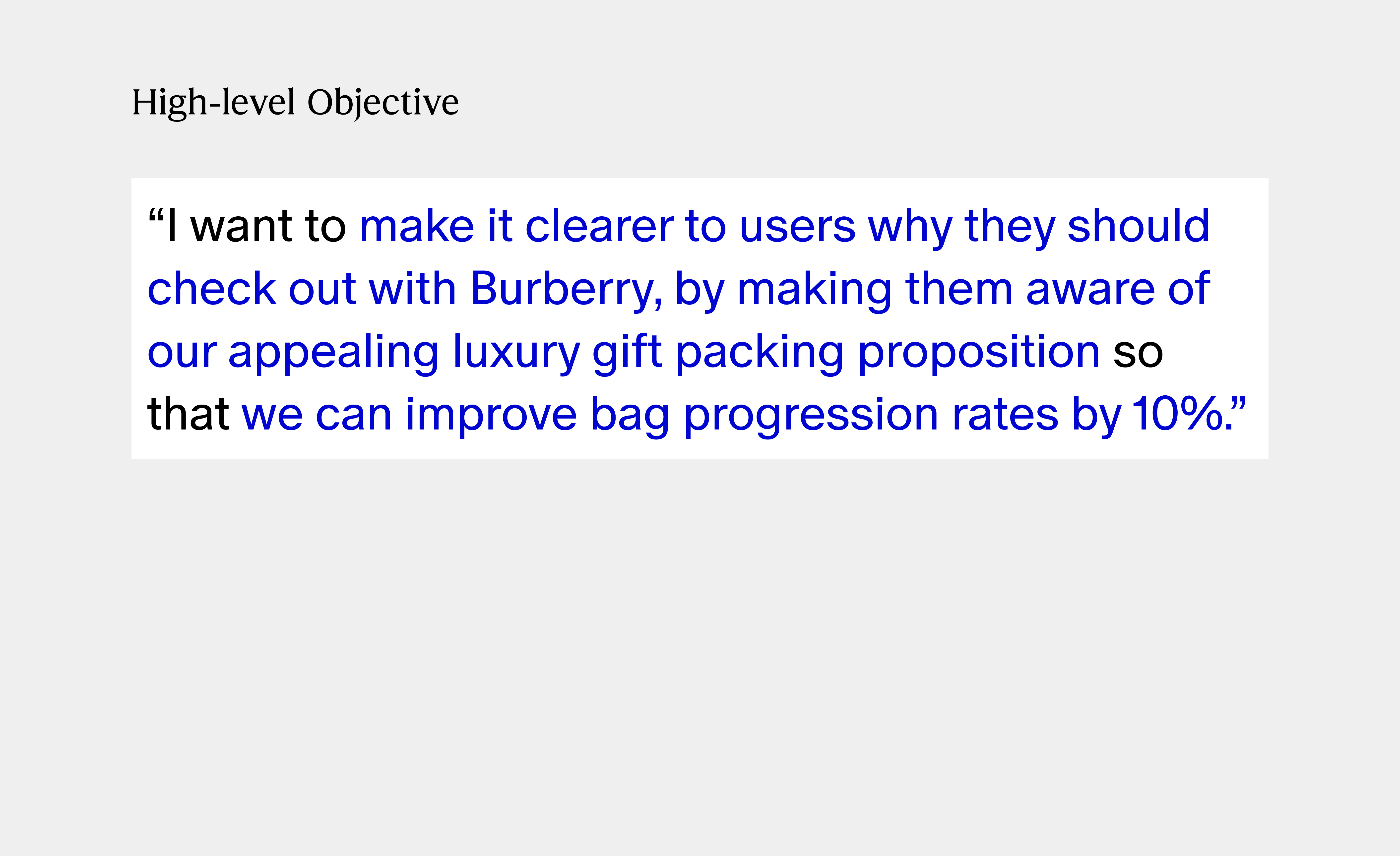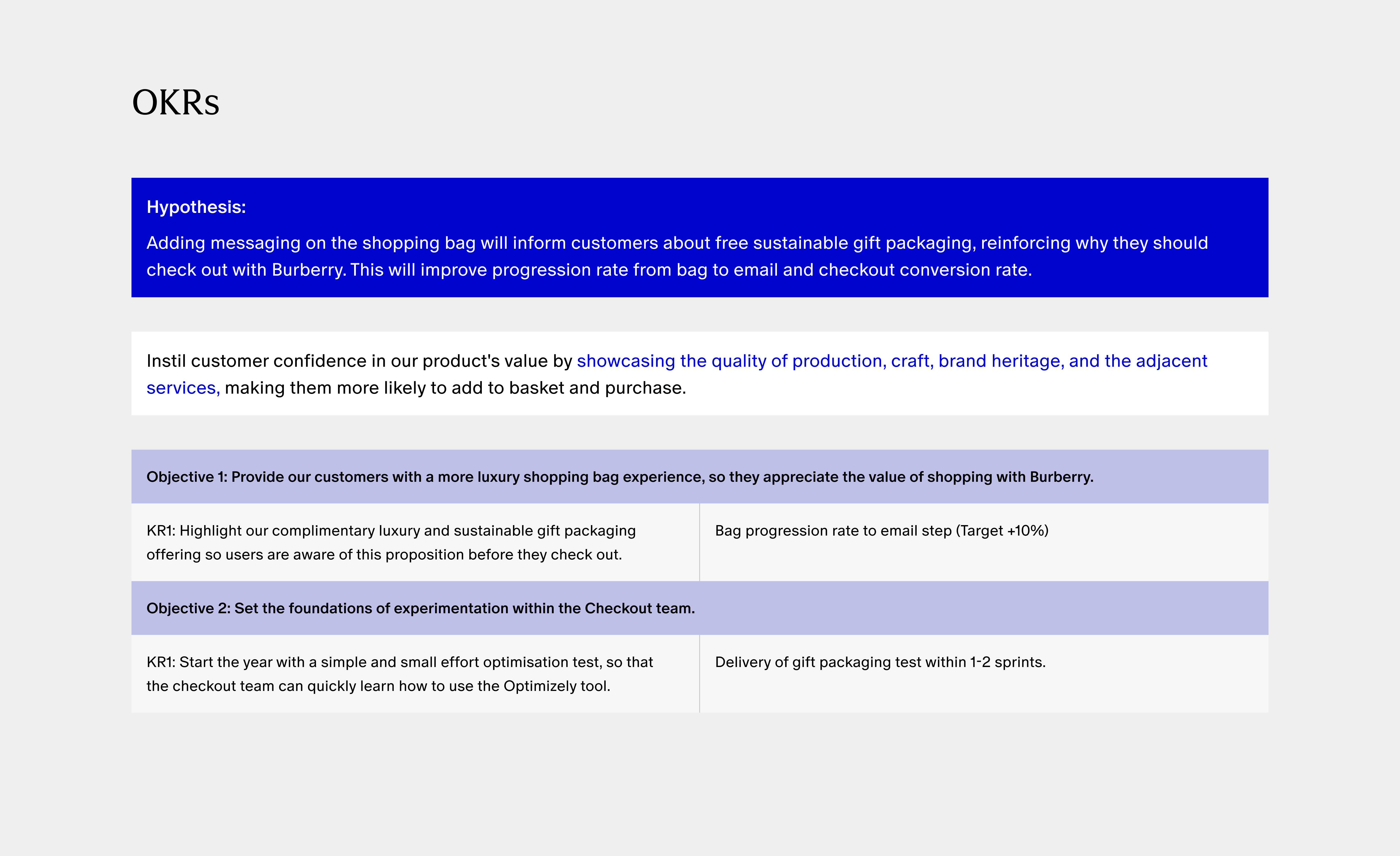 I led the design of an A/B test to enhance the customer experience within the checkout. By introducing messaging on the shopping bag highlighting our free sustainable gift packaging, we successfully increased customer confidence in our product's value and drove higher conversion rates. The project is on track to generate £3 million in additional revenue.