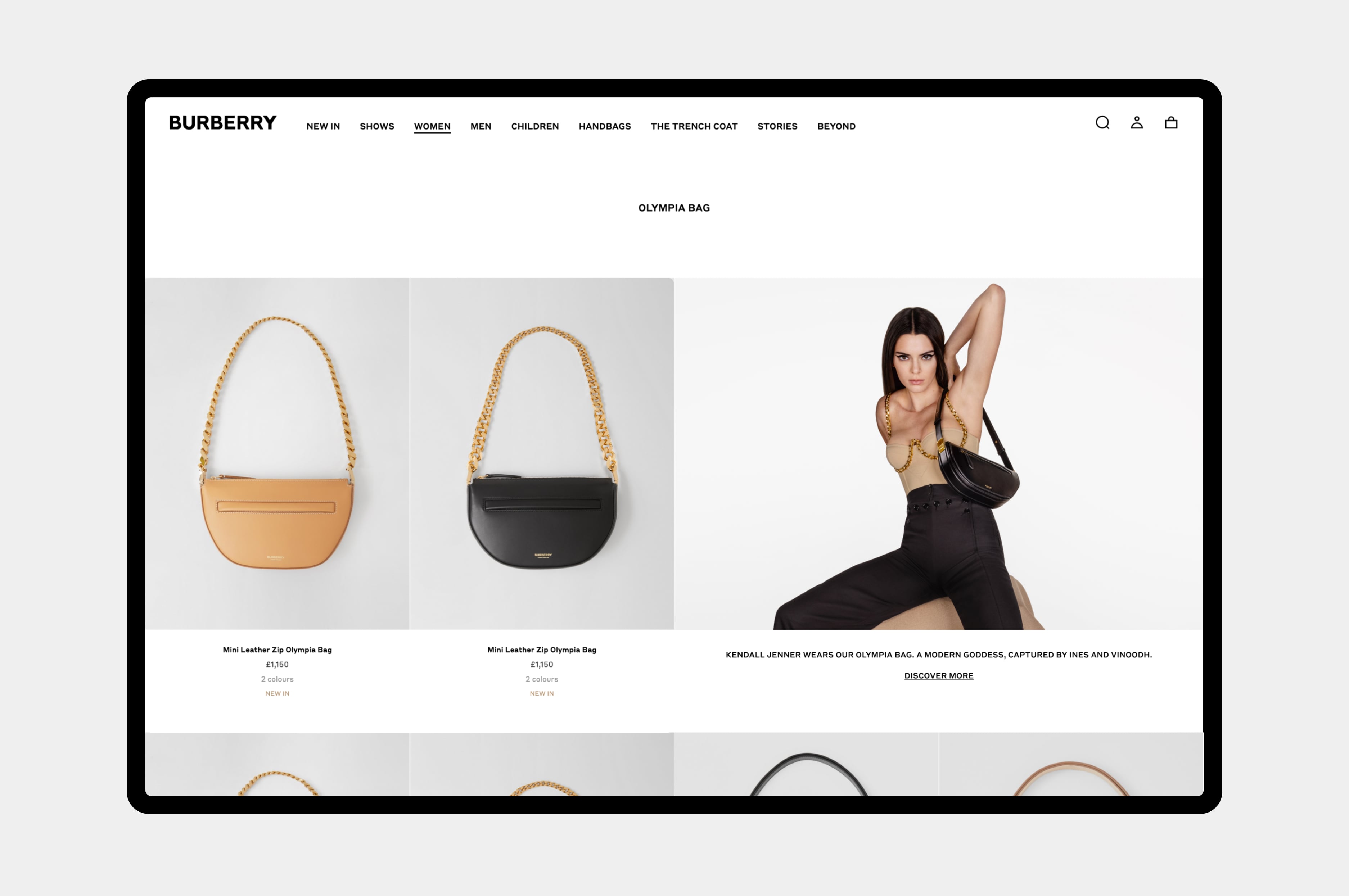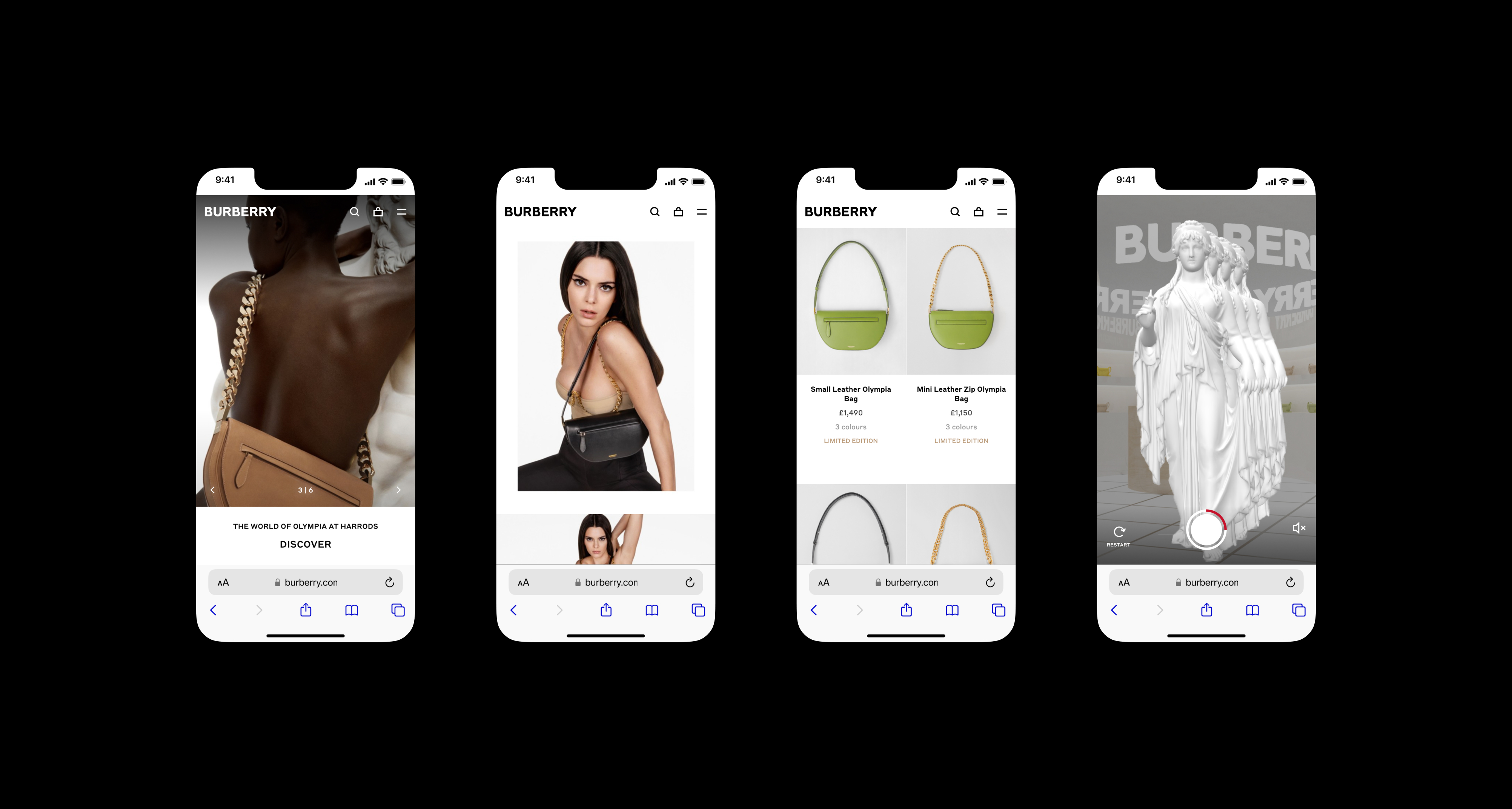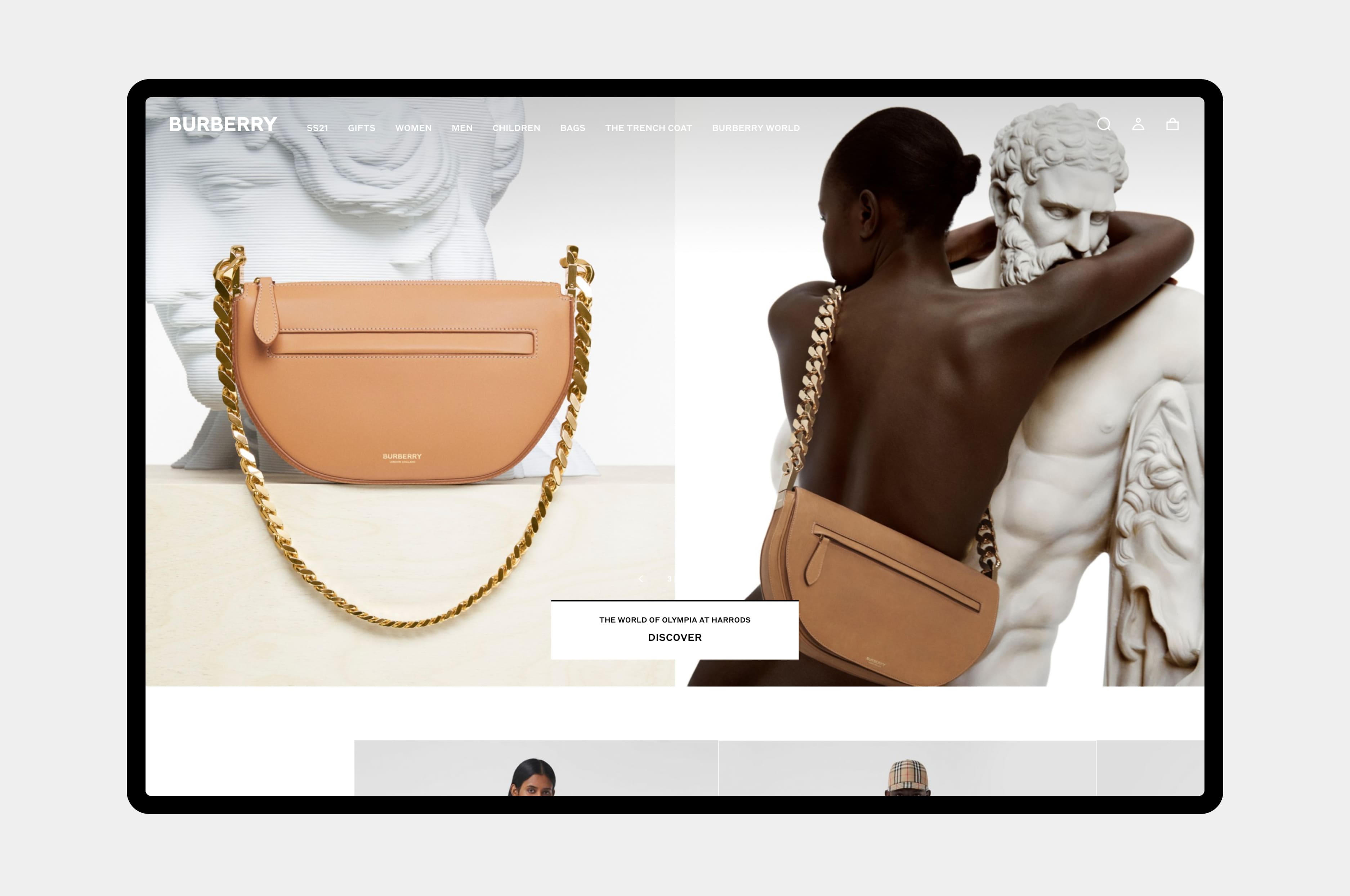 Channeling the hopeful spirit of the Greek goddess Elpis, Burberry's new Olympia bag collection launched with a multi-faceted campaign that I created with my team. This included an immersive digital experience allowing users to delve into the Olympia's story, craftsmanship, and styling options. I also designed a series of pages across the website, covering the Homepage, PLPs, PDPs, storytelling pages, and emails, along with in-store AR filter transporting customers directly into the world of Olympia.