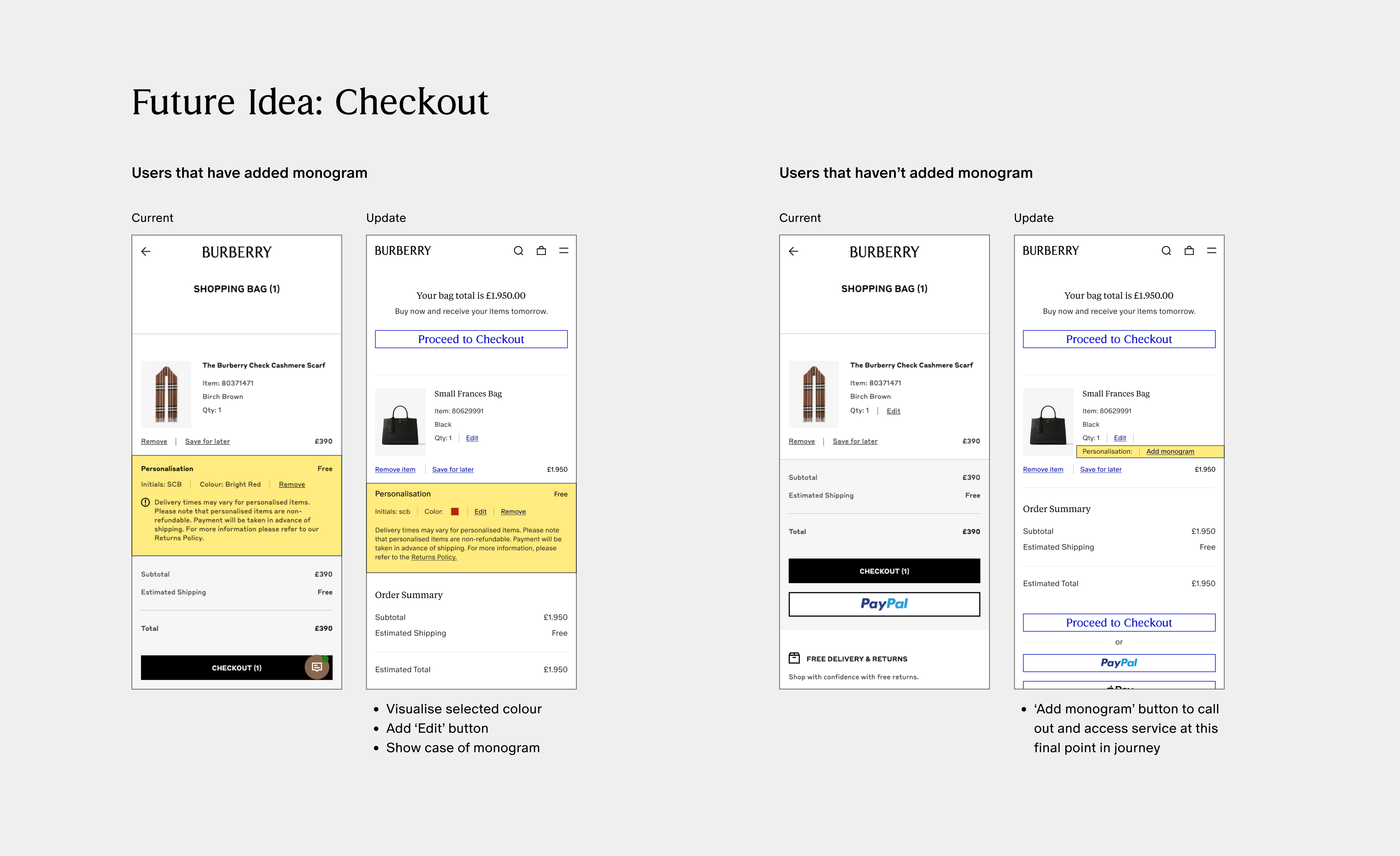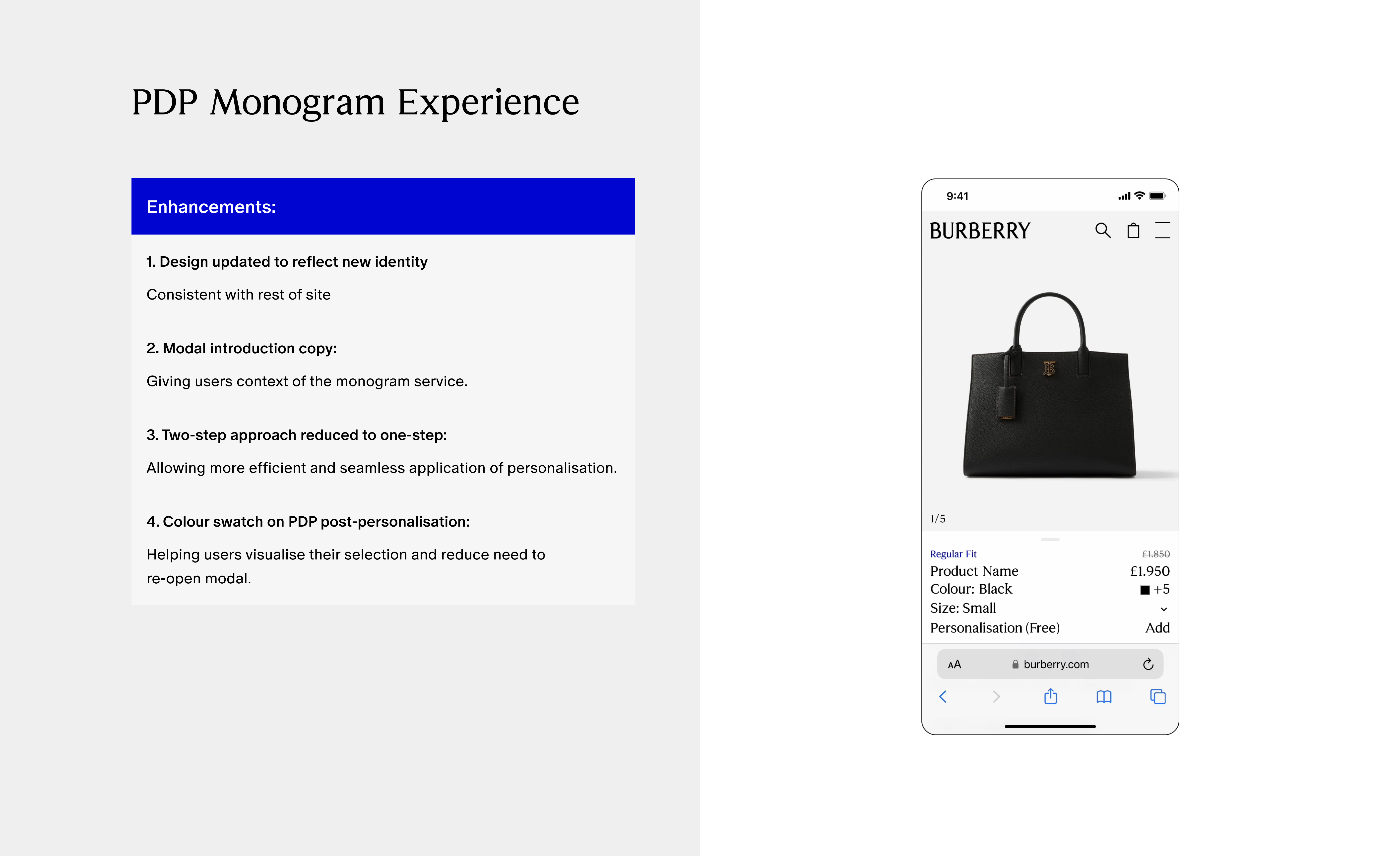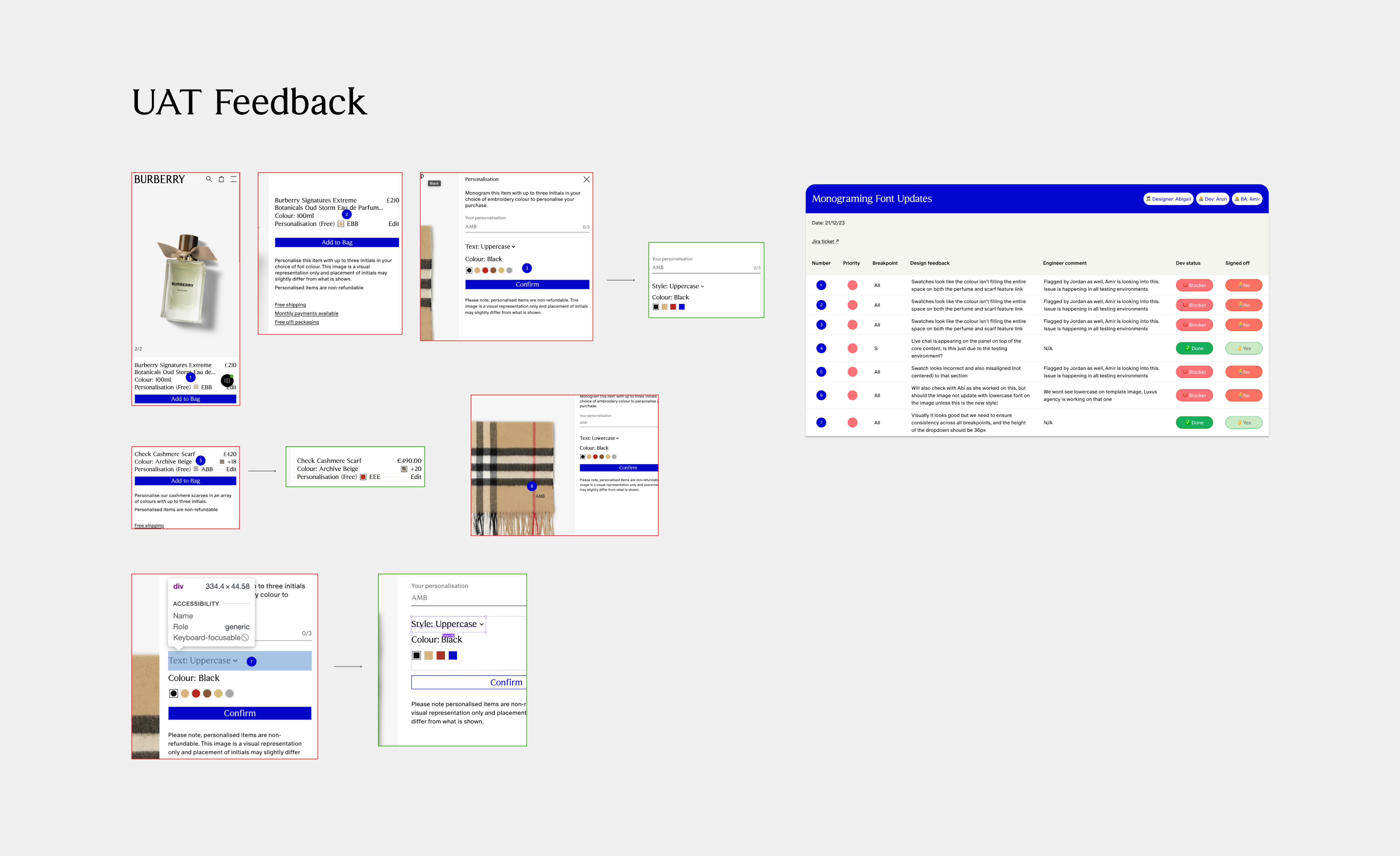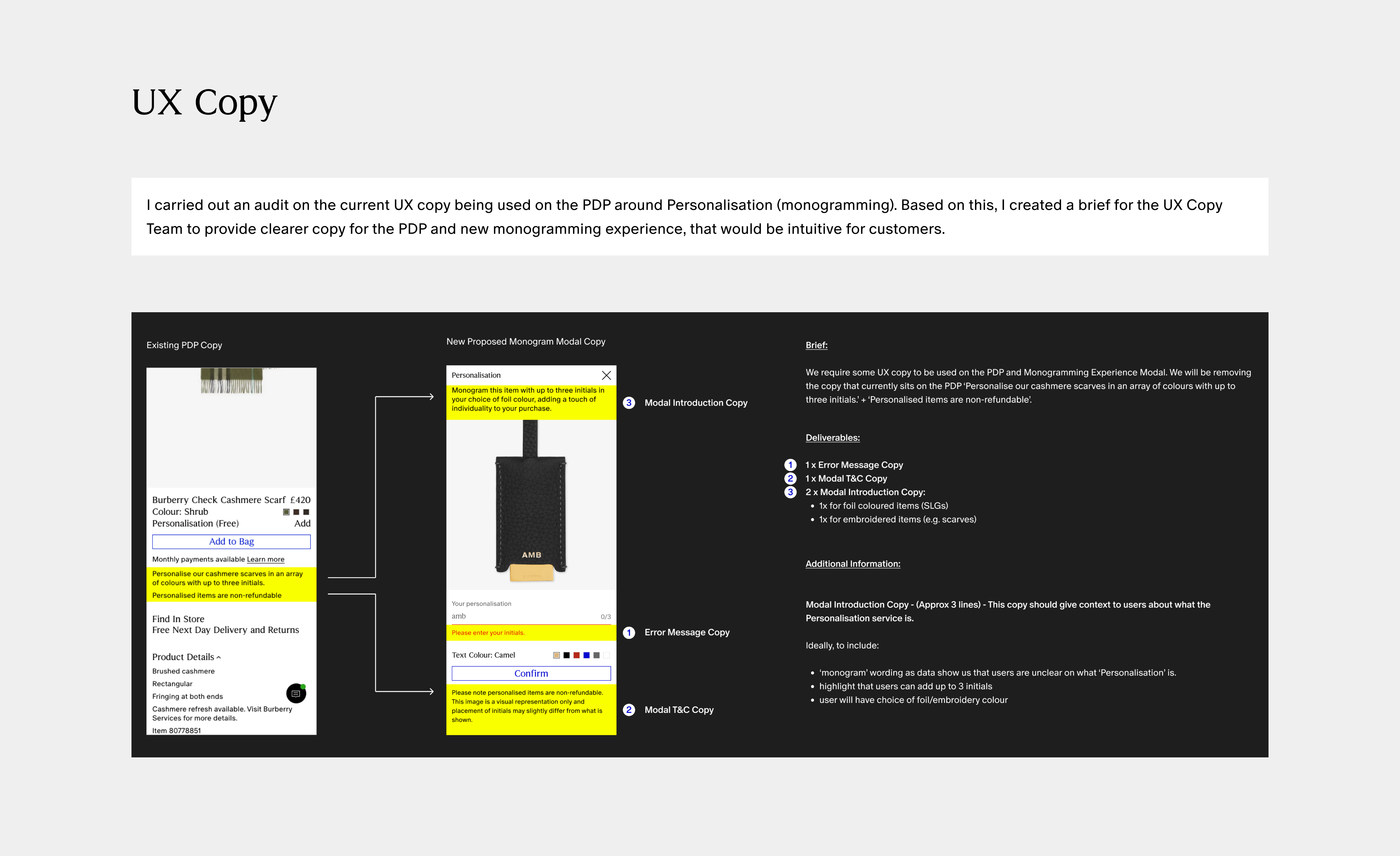 For the Festive Gifting Campaign, I led the design and implementation of a seamless, end-to-end gifting experience on our website. This included a refreshed, user-friendly monogramming interface with a flexible UX for future offerings.